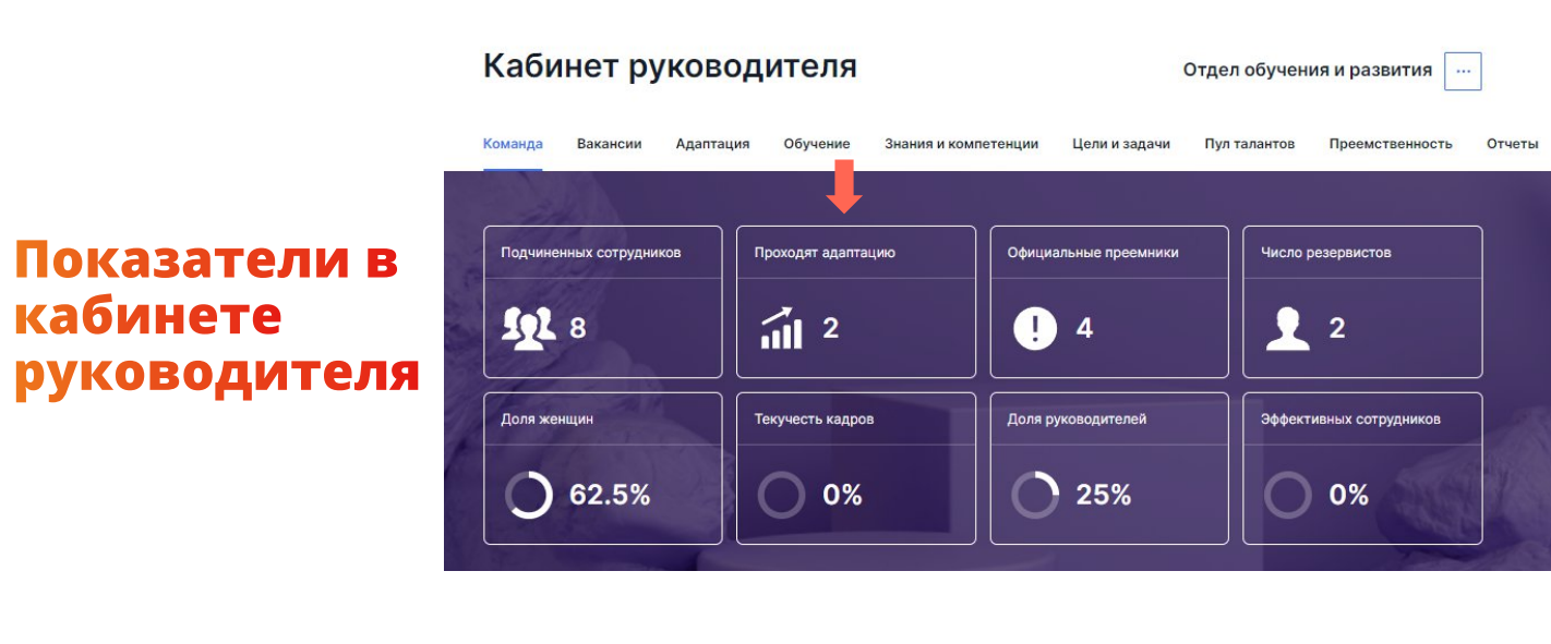 В системе можно сформировать отчеты по результатам адаптации каждого сотрудника. Руководители также могут видеть всю сводную информацию по адаптации новых сотрудников.