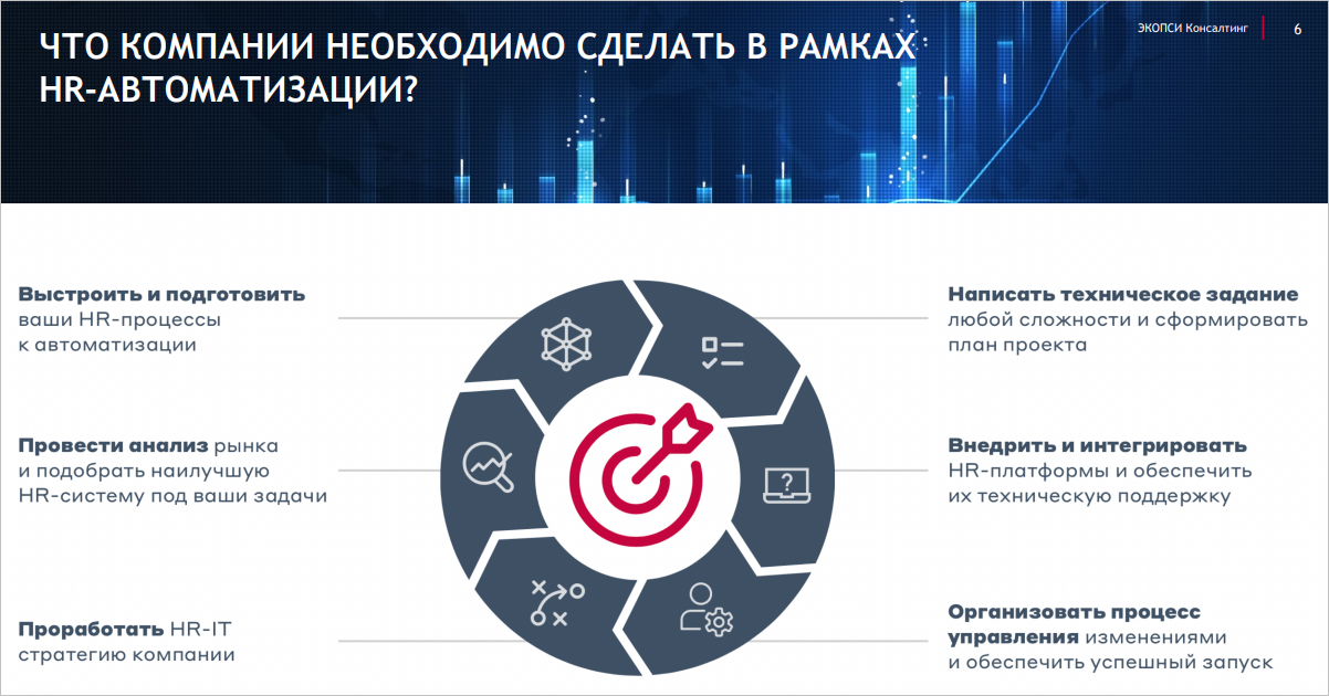 Многие заказчики под HR-автоматизацией подразумевают лишь выбор платформы из нескольких вариантов и затем ее внедрение. Но это только один этап проекта, а все остальные шаги, сопутствующие автоматизации, регулярно выпадают. Какие же это шаги?