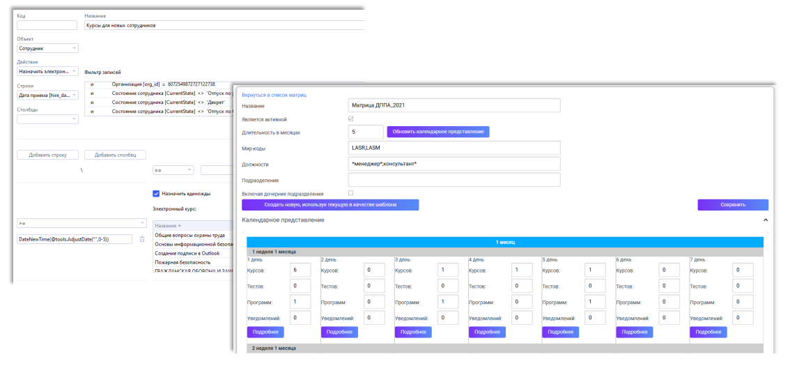 И тогда мы решили создать аналогичный инструмент, который позволит проводить ту же самую работу, но будет проще и нагляднее для пользователей: содержать меньше условий и дополнительных атрибутов. И мы добавили возможность не только назначать тесты или курсы, но и включать сотрудников в различные учебные мероприятия.