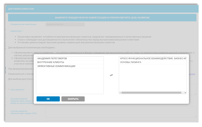 Мы сделали структурированный каталог возможных обучающих программ, как внутренних, так и внешних, для развития той или иной компетенции. Из этого каталога сотрудник может выбрать нужные программы для каждой из компетенций.