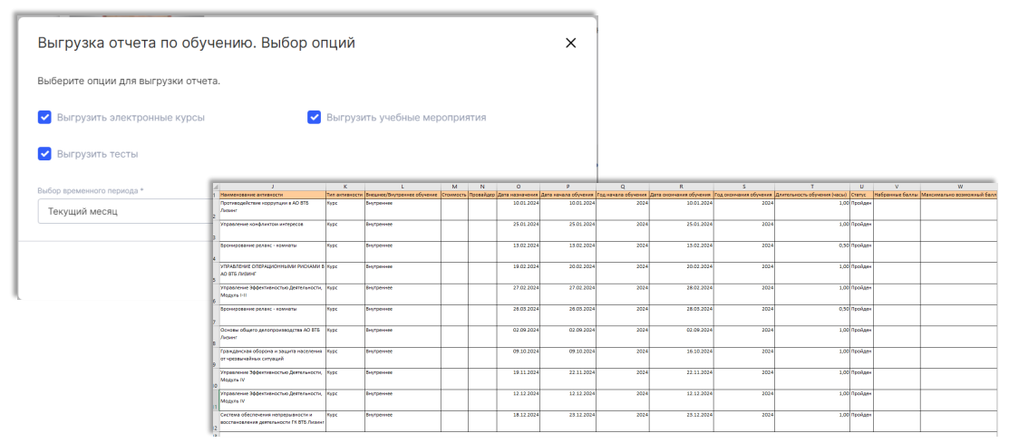 Разработали возможность выгрузить аналитику — посмотреть, сколько людей и куда записались. Это помогает прогнозировать загрузку отдела обучения на год и, кроме того, понимать, сколько рабочего времени сотрудники используют для обучения.