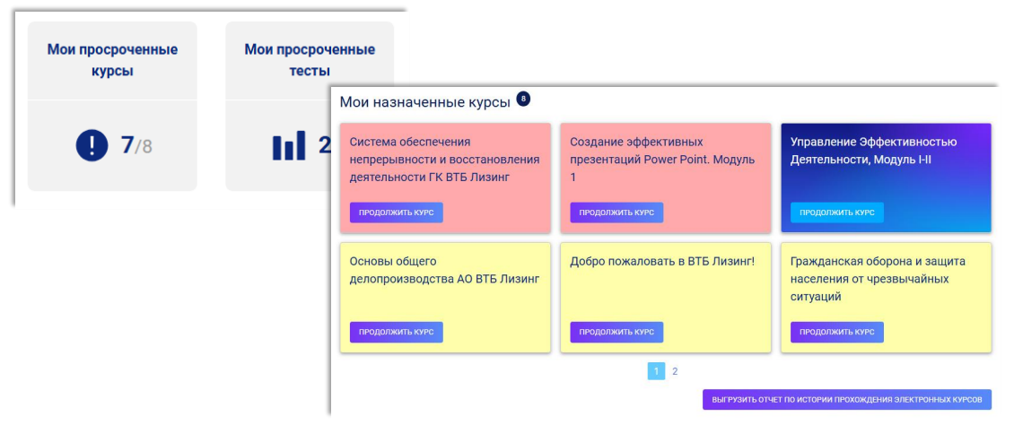 У обязательных курсов есть определенный срок, их прохождение регулируется законодательством, нарушение сроков приводит к штрафам. Такие курсы требуют пристального внимания руководителей. Когда срок их прохождения приближается к концу, они подсвечиваются красным