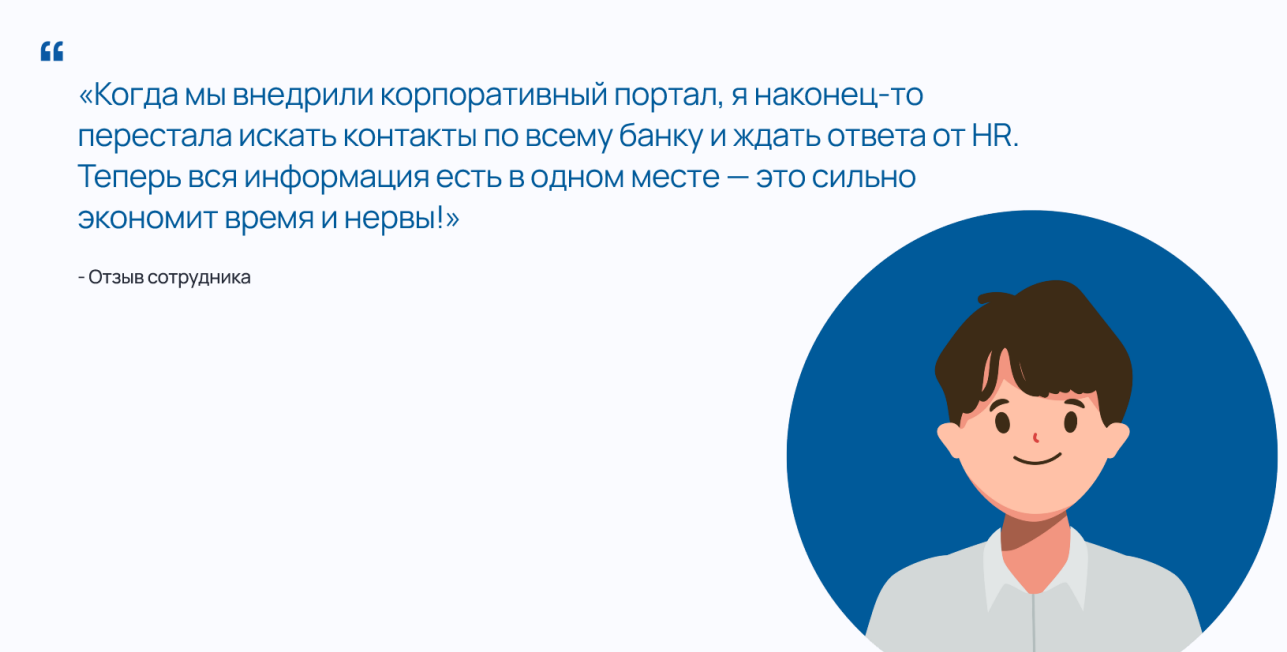 Сотрудники знают, где найти нужную информацию, это и для них очень удобно, и количество запросов в HR-департамент сильно сократилось.