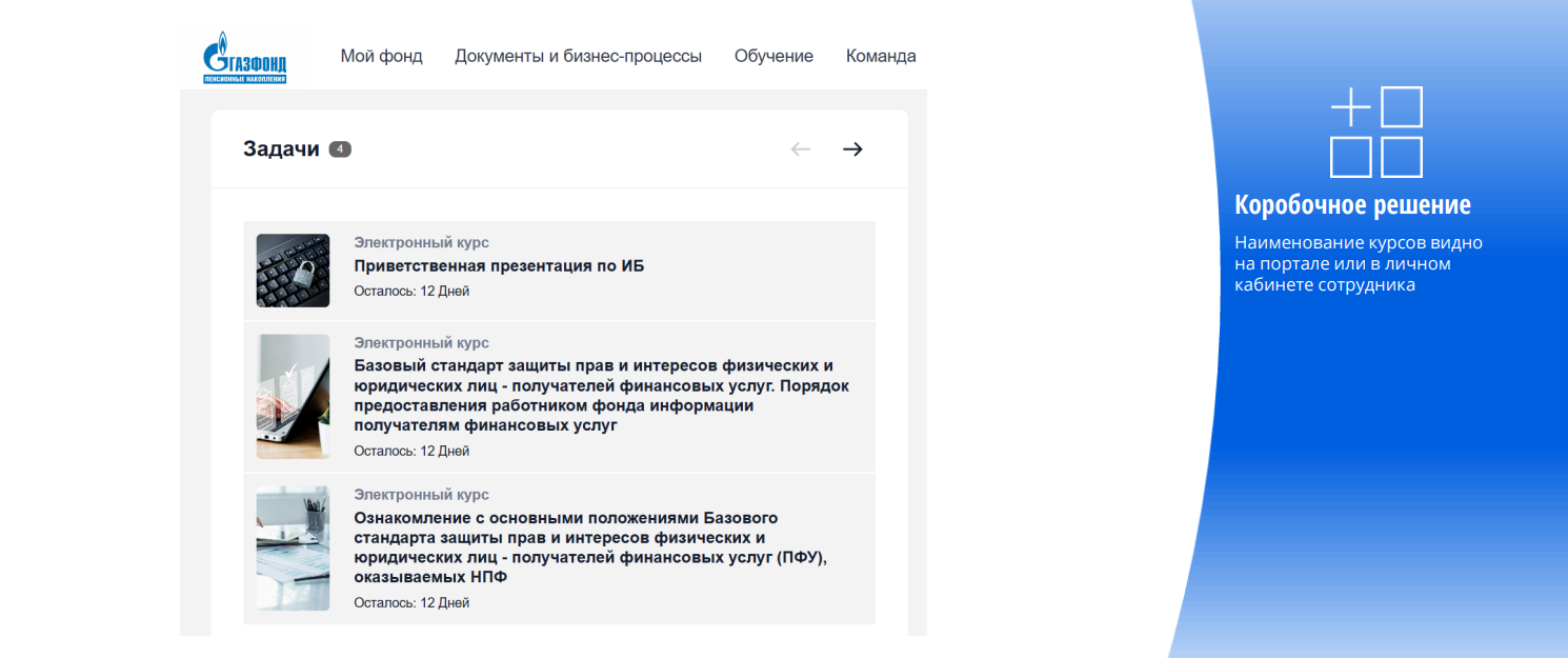 - Управление процессом назначения и прохождения обязательной модели обучения вручную требовало огромных ресурсов и приводило к ошибкам