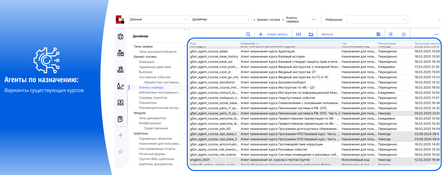 - По каждому курсу для каждой группы сотрудников запускаются свои агенты
