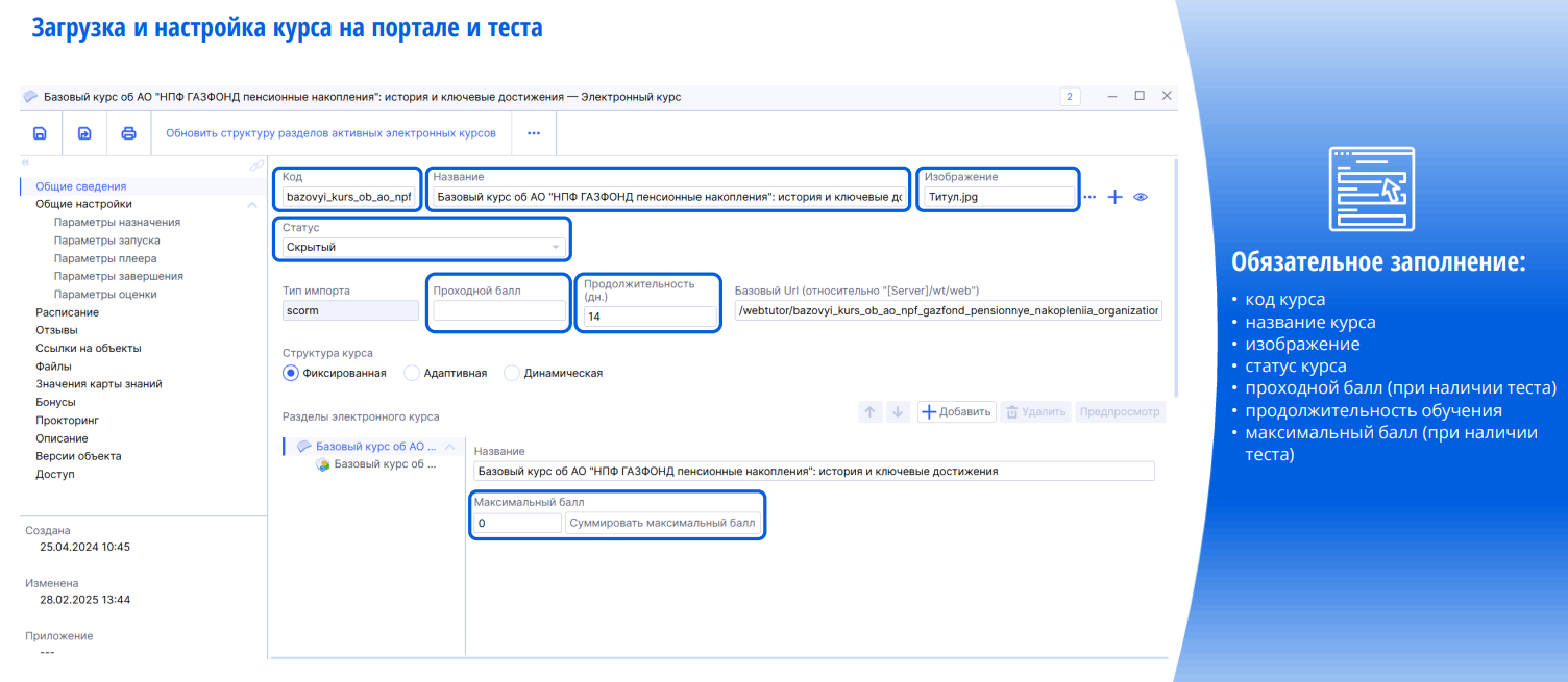 Этап 1. Загрузка курсов и тестов на портал