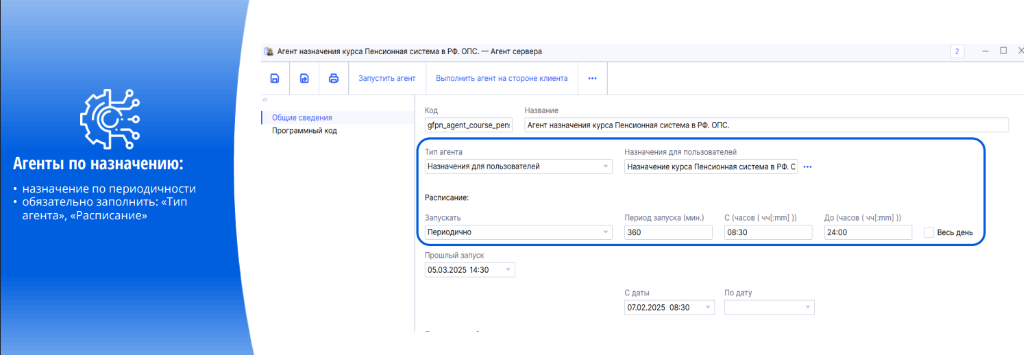 2) Настроили автоматические агенты, которые выполняются по расписанию, обновляют данные и назначают курсы: